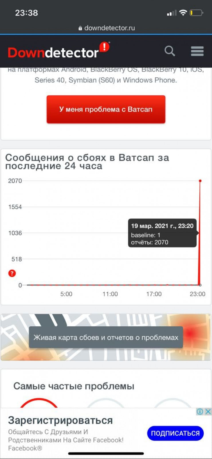 По данным Downdetector, сообщения о недоступности сервисов появились около 23.00 по времени Нур-Султана. В случае с WhatsApp большинство из них были связаны с подключением к серверу, пользователи Instagram пожаловались на проблемы с загрузкой и входом в приложение.