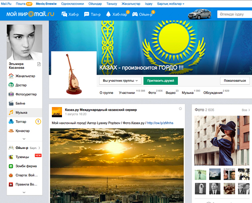 Интерфейс казахской версии "Мой Мир".