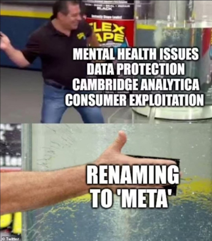 Один из мемов изображал человека рядом с протекающей цистерной воды, символизируя водопад скандалов, обрушившихся на Facebook в последние месяцы, которые возникли из-за утечки внутренних документов