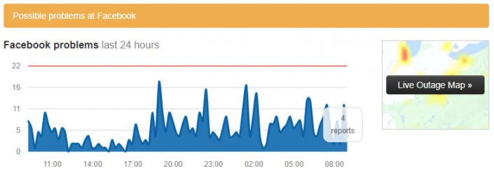 По данным портала Downdetector, имеются "возможные проблемы с Facebook". Пользователи жалуются на полное отсутствие доступа, проблемы со входом и неотображение картинок.