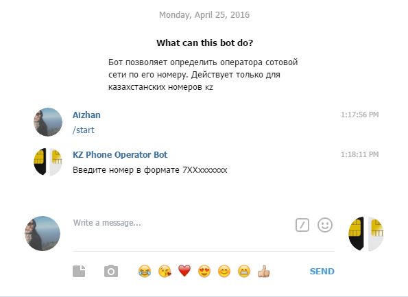 Алматинский программист Сергей Тян написал бота для Telegram, который умеет определять оператора сотовой связи по номеру телефона, сообщает корреспондент Tengrinews.kz.