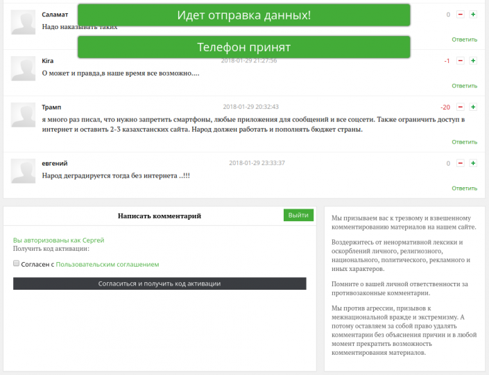 Как известно, сейчас оставлять комментарии на сайте могут пользователи, прошедшие регистрацию. В связи с этим новостной портал Tengrinews.kz ввел идентификацию комментаторов посредством SMS-регистрации.