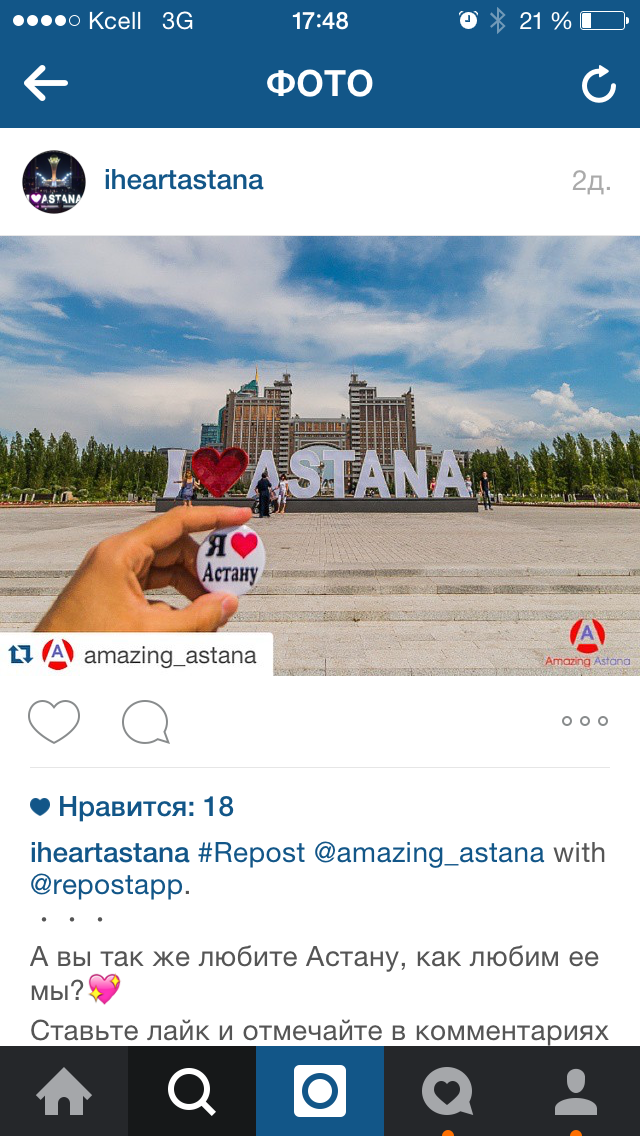 В казахстанском сегменте Instagram популярность набирает хэштег #iloveAstana. Причиной тому стало появление в столице архитектурной формы "I love Astana", передает корреспондент Tengrinews.kz.