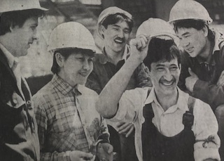 1 мая 1990 года, вторник, газета "Казахстанская правда". На передовице - простые рабочие, которые работают на Алма-Атинском домостроительном комбинате, и их бригадир. Статья посвящена их руководителю и ребятам, которые с удовольствием работают на "одном из самых сложных участков - выпуске панелей для наружных стен домов".