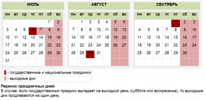 Далее казахстанцев ждет еще один праздничный день - 1 сентября. В первый день осени казахстанцы будут праздновать начало мусульманского праздника Курбан айт. 2 и 3 сентября последуют два обычных выходных дня - суббота и воскресенье.
