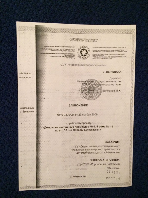 Чиновники Жезказгана около десяти лет не могут переселить жильцов аварийного дома. Заключение о непригодности всех несущих конструкций дома номер 11 по улице 30 лет Победы было выдано в 2010 году. В документе написано о необходимости запрета эксплуатации дома и расселении жителей четвертого и пятого подъездов. Часть жильцов наиболее опасного подъезда расселили, однако в большей части дома люди продолжают жить. Местные власти пока ничем им помочь не могут, для переселения семей необходимо около одного миллиарда тенге, передает корреспондент Tengrinews.kz.