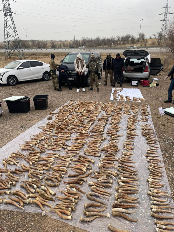 "Сотрудниками УБОП ДП Алматинской области были задержаны трое мужчин. В ходе оперативных работ было изъято более 100 килограммов сайгачьих рогов в количестве 953 единиц", - сообщил начальник УБОП ДП Алматинской области Абилгазы Толепбергенов.