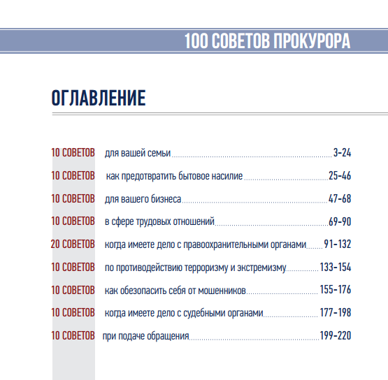 На официальном сайте Генеральной прокуратуры уже появился раздел под названием "100 советов прокурора".  Пользователям предлагаются советы по девяти актуальным темам.