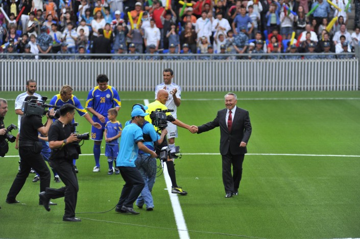 Символический первый удар по мячу нанес Президент Нурсултан Назарбаев.