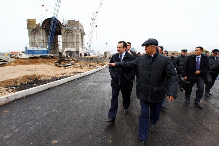 Экс-аким Астаны Имангали Тасмагамбетов и экс-премьер-министр Карим Масимов на обходе стройки/ фото skyscrapercity.com