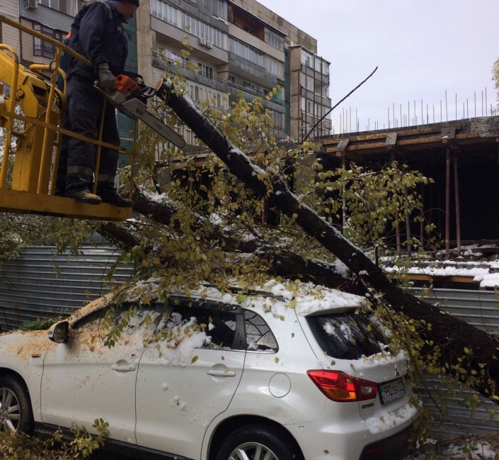 По информации коммунального предприятия, 2 ноября с 7.00 в службу "109" поступило 35 обращений от жителей города. "Из-за выпадения обильных осадков в виде снега, в городе произошло падение веток и деревьев, некоторые из них представляют угрозу припаркованным автомобилям. Многие автотранспортные средства уже пострадали от упавших деревьев", - сообщила пресс-служба.