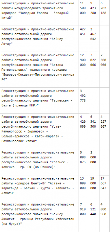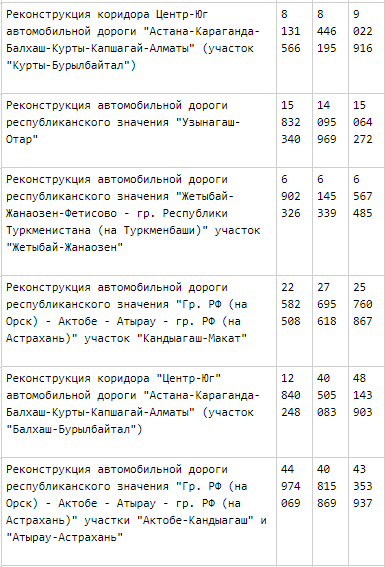 Как стало известно из официальных документов, в 2018 году внешние займы на реконструкцию различных участков дорог составят 111,263 миллиарда тенге, в 2019 году - 137,704 миллиарда тенге, в 2020 году - 147,913 миллиарда тенге. Всего - 396,880 миллиарда тенге.