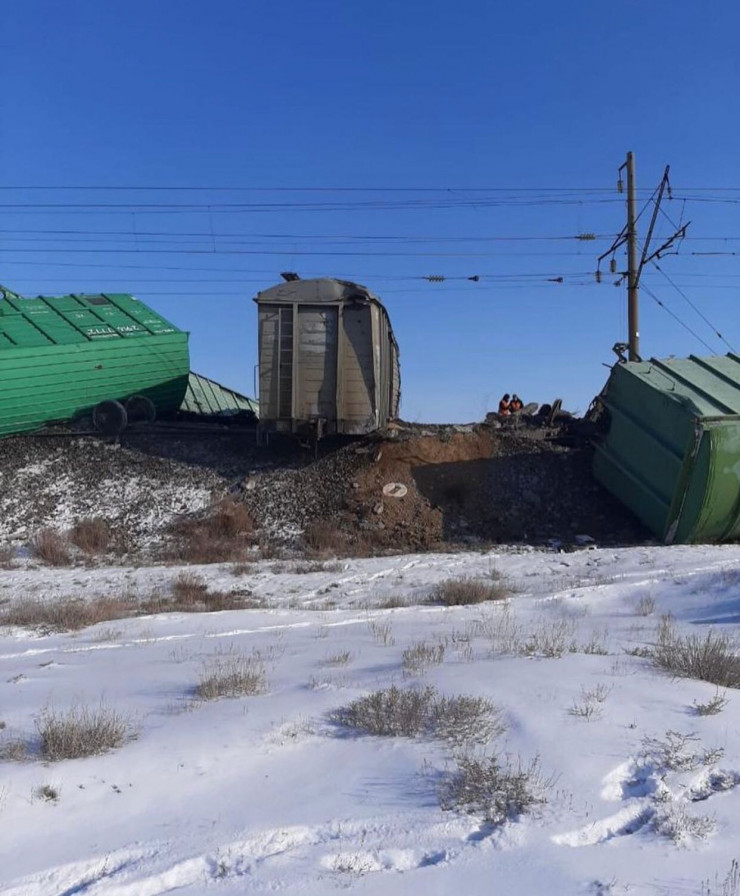 По данным пресс-службы АО "Қазақстан темір жолы", сход 12 вагонов грузового поезда произошел 1 февраля в 13.55.