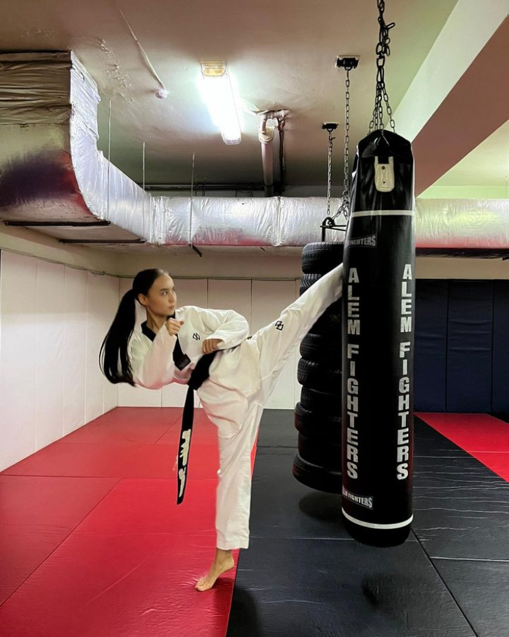 "В свободное время я занималась тхэквондо, получила черный пояс и заняла первое место на республиканском турнире WT. Окончила музыкальную школу и играю на пианино и домбре. На республиканском конкурсе по домбре мне удалось занять первое место.