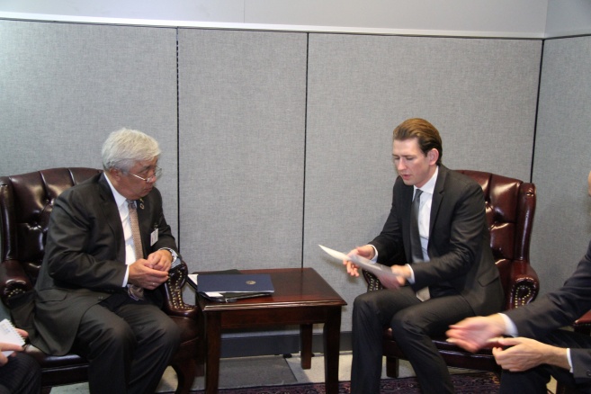 Ключевыми темами состоявшихся переговоров стали продвижение ранее озвученных Нурсултаном Назарбаевым международных инициатив и предстоящее членство Казахстана в Совете Безопасности ООН в 2017-2018 годах. Идрисов напомнил Генассамблее о 25-летии независимости нашей страны и отметил, что еще в 1991 году некоторые наблюдатели сомневались в способности Казахстана выжить в качестве суверенного государства. Такие сомнения были высказывались с учетом многонациональности и многоконфессиональности населения страны, несбалансированности экономики, огромного материального и морального грузов в виде военной инфраструктуры и ядерного арсенала.