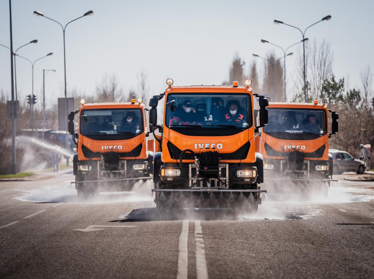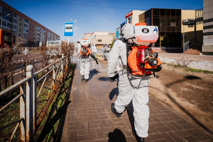 В столице на ежедневной основе проводятся работы по дезинфекции. Более 2800 жилых домов начали дезинфицировать по третьему кругу. Участие в ежедневной обработке принимают порядка 500 человек. Дезинфицирующими растворами также обрабатывают прилегающие территории всех рынков города, медицинских учреждений, торговых центров, супермаркетов, блокпостов и других мест массового скопления людей.
