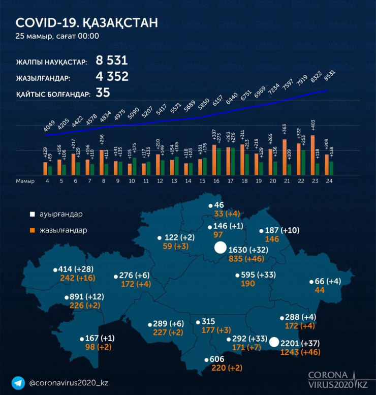 - Алматы – 37 новых случаев, (плюс 1,7 процента)