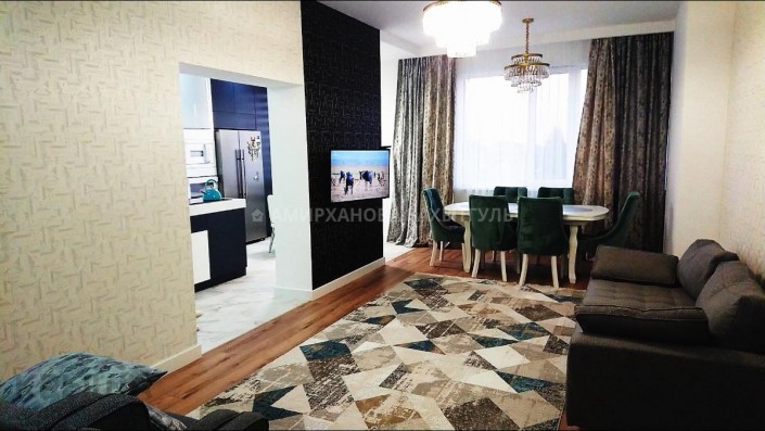 Расположена она в жилом комплексе "Жайлау" на пересечении проспекта Аль-Фараби и улицы Мустафина. Автор объявления сдержанно информирует: в квартире с авторским дизайном две спальни, гостиная, паркинг, а из окна открывается вид на горы.