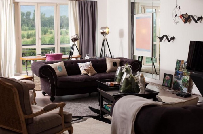 Квартира отделана в серо-бело-черных цветах и оборудована по последнему слову техники.