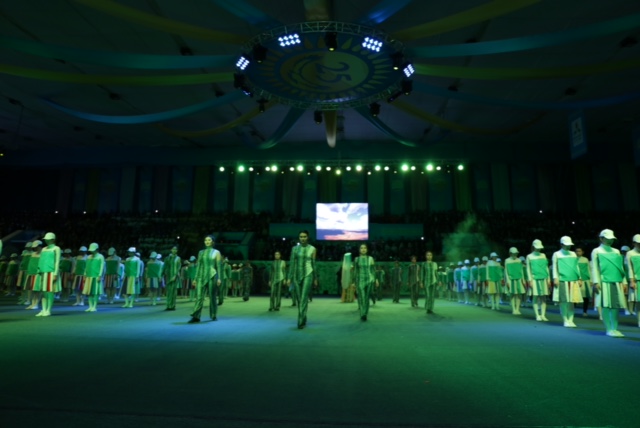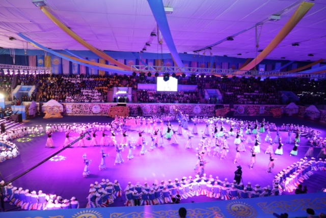 Торжественное собрание продолжилось праздничным концертом. Грандиозное представление с применением красочных спецэффектов стало своеобразным экскурсом в историю Казахстана, где были представлены некоторые особо яркие исторические и культурные аспекты.