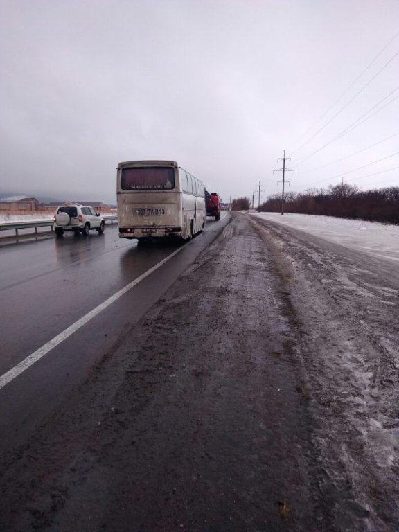 В тот же день на автодороге Иртышск - Ленинский - Русская поляна съехал в кювет пассажирский автобус, следовавший в Омск. Из него эвакуированы в пункт обогрева 23 пассажира, из них трое детей. В 19.00 из-за погодных условий (метель, плохая видимость, гололед) автобус с пассажирами вернулся в Павлодар.