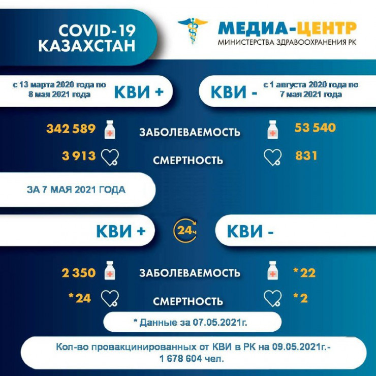 Информация о заболеваемости коронавирусной инфекцией в РК на 9 мая 2021 года