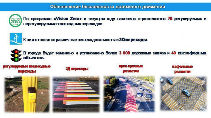 "Для снижения аварийности в рамках программы Vision Zero совместно с Управлением городской мобильности указанные опасные участки будут обновлены. К примеру, как вы уже заметили, на некоторых участках и перекрестках нанесены необычные ярко-красные, желтые и даже вафельные разметки. Это сделано для увеличения внимания водителей", – сообщил начальник Департамента полиции города Канат Таймерденов.