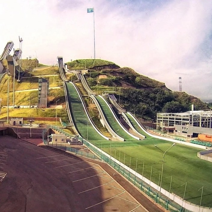 Аттракционы зип-лайн и роупджампинг, мотокросс-шоу, детские батуты, катание на квадроциклах и багги, показательные выступления лыжников ждут гостей международного комплекса лыжных трамплинов "Сункар".