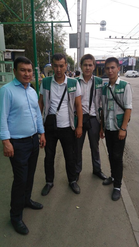 Контролеры Green Bus Company с заместителем руководителя Управления пассажирского транспорта и автомобильных дорог Алматы Бекзатом Бекишевым. Фото предоставлено Green Bus Company