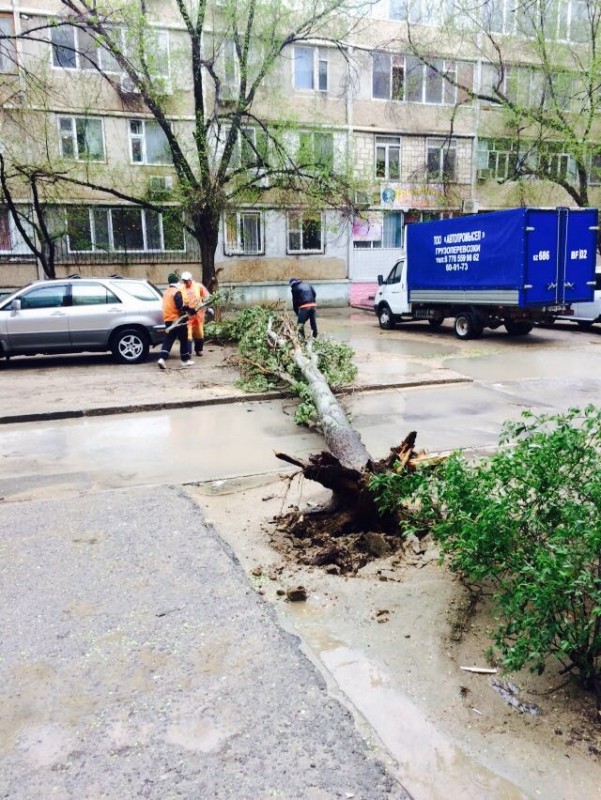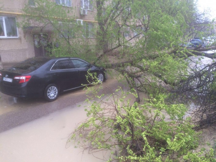 "По Актау работа по ликвидации последствий обильных осадков ведется на 7 участках: "Желтый рынок" 32 микрорайон, КГТУИ им. Ш.Есенова, ТЦ "Олжа" 30 микрорайон, территория 15 дома 28 микрорайон, 28 "а" Бизнес-центр "Аксункар", территория перед ТЦ "Астана" и автодорога между площадью "Ынтымак" и акиматом Мангистауской области. Привлечено 4 единицы спецтехники, 3 мотопомпы. Задействовано 12 человек. Кроме того, в результате сильного ветра возле 28 дома 14 микрорайона упало дерево на автомашину "Тойота Камри", также упало дерево во дворе 25 дома 8 микрорайона. Пострадавших нет. Бригады коммунальных служб выезжают по звонку от жителей, в чьих дворах есть упавшие деревья и их сразу же вывозят", - сообщила пресс-секретарь ДЧС Мангистауской области Гульнара Ходжабекова.