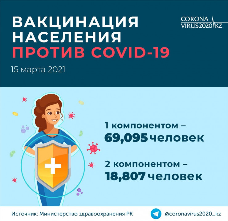 По состоянию на 15 марта 2021 года общее количество вакцинированных лиц первым компонентом "Спутника V" составило 69 095 человек. Общее количество вакцинированных вторым компонентом - 18 807 человек.