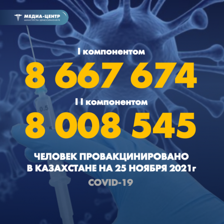 По данным ведомства на 25 ноября, первым компонентом вакцины от коронавируса вакцинировали 8 677 674 человека, вторым компонентом - 8 008 545 человек.