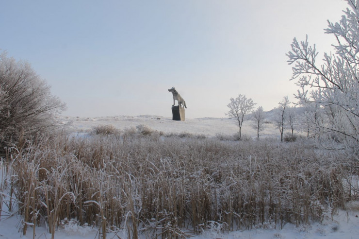 В Улытауском районе Карагандинской области установили девятиметровую скульптуру волка, передает корреспондент Tengrinews.kz.
