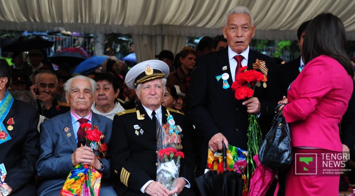 После речи акима прозвучал гимн Казахстана, а затем состоялось возложение цветов. Собравшиеся поздравляли ветеранов и кричали "Спасибо за победу!". "Для меня День Победы самый лучший и дорогой праздник. Спасибо, что нас не забываете и помните наш подвиг. Я воевал на Втором Прибалтийском фронте, в штурмовой инженерно-саперной бригаде. Мы прошли от города Невель до Риги", - сказал ветеран войны Петр Луньков.