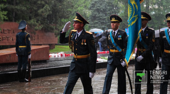"Уважаемые ветераны, дорогие алматинцы! Вы видите, что даже природа сегодня скорбит по тем, кто отдал свою жизнь за наше спокойствие, за наше благополучие, за мир и согласие. Вы знаете, что более одного миллиона 200 тысяч казахстанцев ушли на фронт, половина из них не вернулась домой. Мы знаем, что казахстанцы внесли огромный вклад в эту победу. И сегодня мы скорбим о всех наших отцах и дедах, которые пролили кровь и показали, что такое дружба, честь, героизм, поддержка. Они отдали жизнь за наш Казахстан, за нашу независимость", - сказал в своей речи аким города.