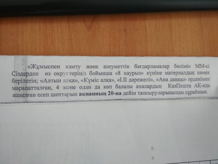 В Управлении занятости и социальной защиты Астаны опровергли данную информацию. В ведомстве отметили, что она недостоверная.