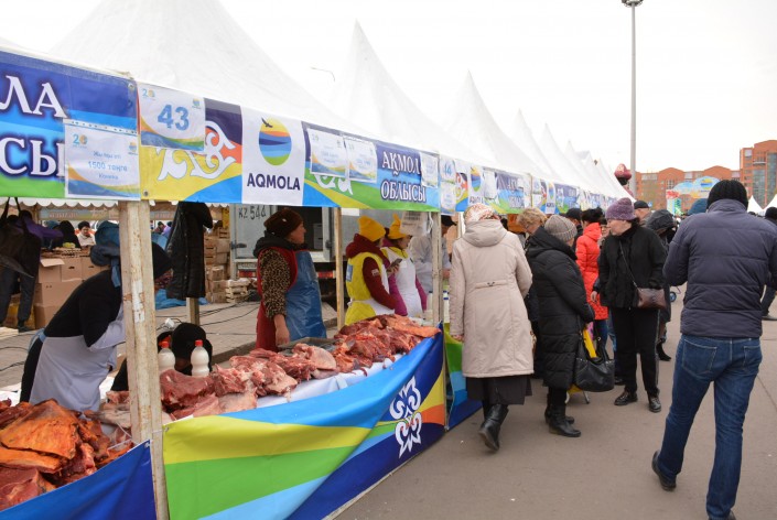 Цены, по данным пресс-службы акимата региона, значительно ниже столичных. Например, конину здесь отпускали по 1500 тенге, яйца в зависимости от категории от 18 до 21 тенге за штуку, картофель и морковь - по 60 тенге, кумыс и шубат - по 600 тенге и многое другое.