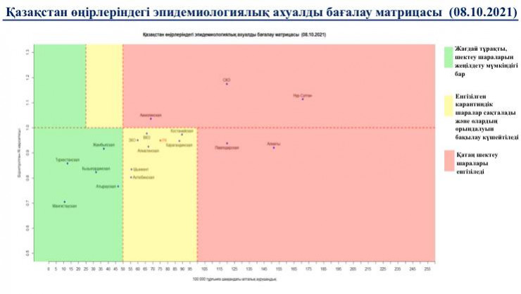 - в "красной" зоне находятся Нур-Султан, Алматы, Павлодарская, Акмолинская, Северо-Казахстанская области;