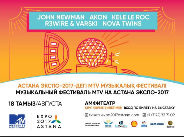 Музыкальный фестиваль MTV на территории EXPO-2017 в Астане пройдет 18 августа, передает корреспондент Tengrinews.kz.