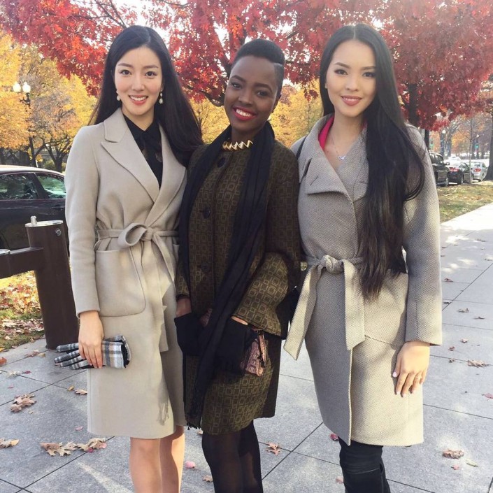 Алия Мергембаева (справа) с участницами конкурса "Мисс Мира-2016". Фото из "ВКонтакте".