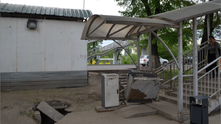 "Транспортная развязка в четыре различных направления и пересечения крупных улиц: Райымбека, Суюнбая и Пушкина. Сюда приезжают областные автобусы. Здесь сразу бросается в глаза отсутствие специального пространства для посадки и высадки пассажиров по проспекту Райымбека - того, чем являлся старый автовокзал, а существующие остановки как будто рассчитаны только на городской поток пассажиров, не учитывая областного объема. Видно не только проблему с недостатком остановок, но и с транспортной и дорожной системами. Автобусы и маршрутные такси паркуются иногда поперек полосы движения, закрывая ее. Также же они паркуются и делают посадку на левой полосе движения, игнорируя площадку перед остановкой", - отмечается в исследовании.