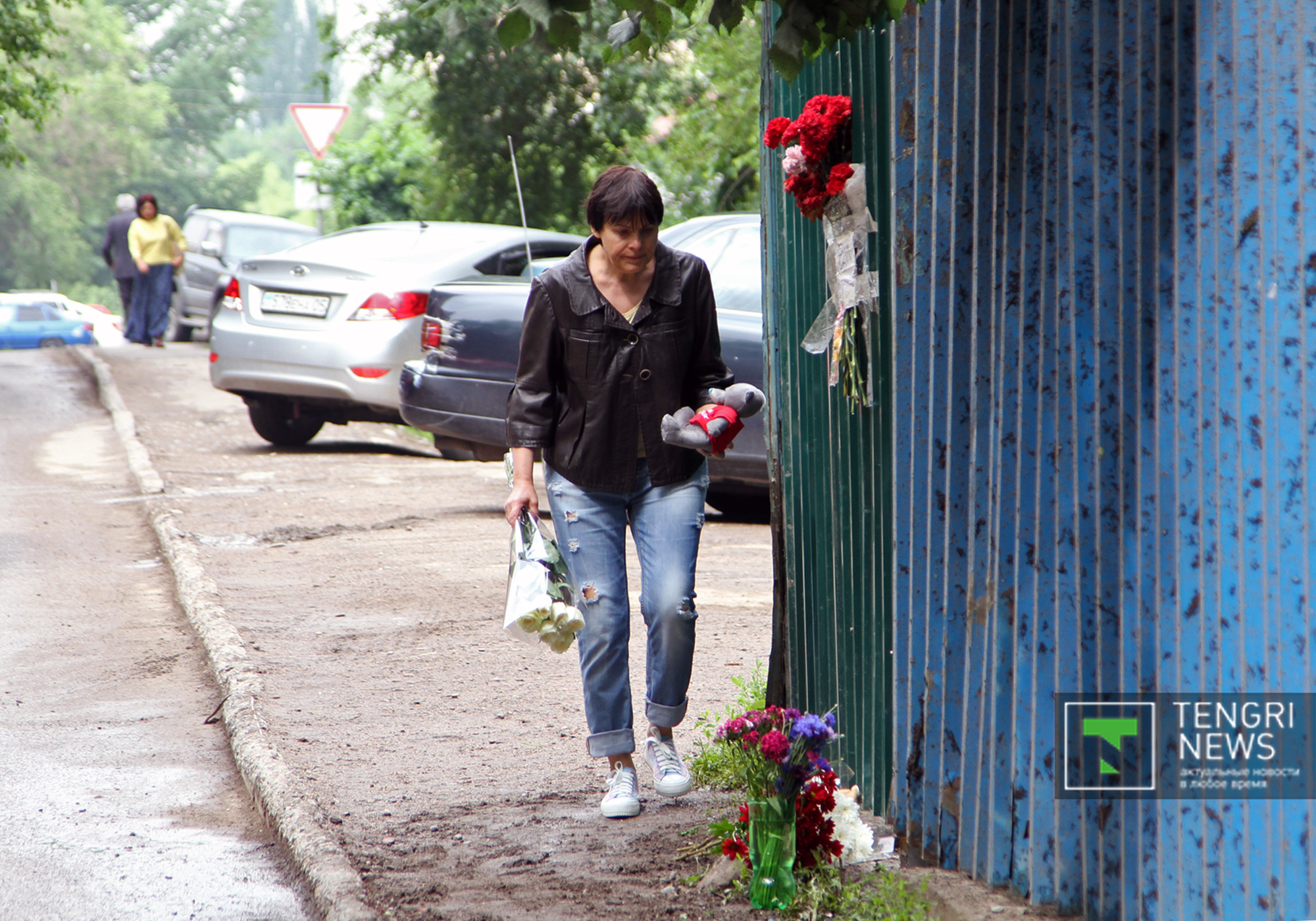 На место трагедии в детском саду №58 по улице Сулейменова в Алматы горожане несут цветы, передает корреспондент Tengrinews.kz.