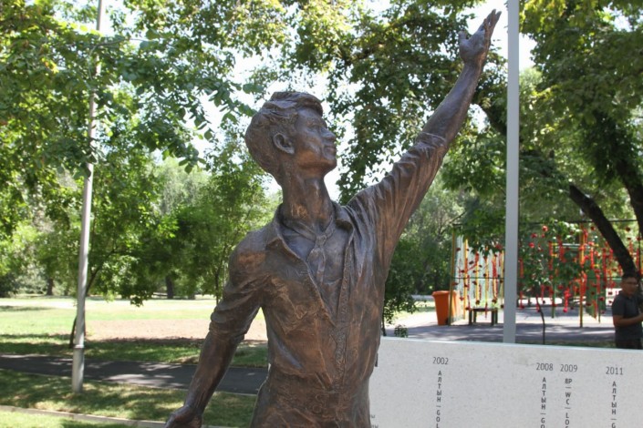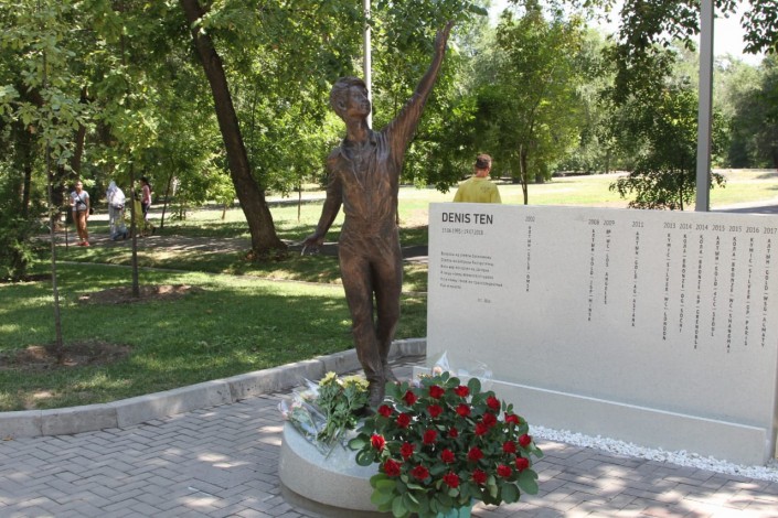 Несмотря на сильную жару и разгар рабочего дня, возле памятника Денису Тену в Алматы многолюдно. Среди тех, кто хочет почтит память чемпиона, люди разных возрастов и профессий.