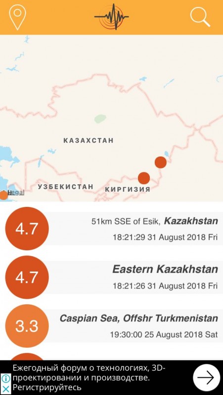 Сведения об ощутимости (по шкале МSК-64): Алматы 4 балла.
