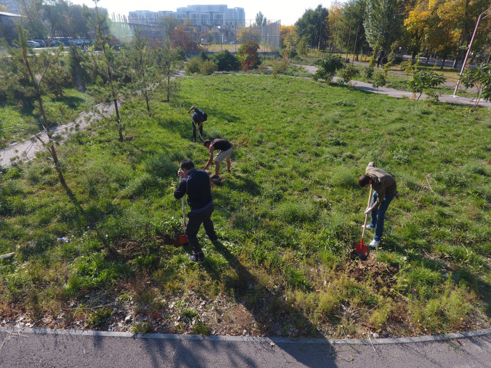 Алматинцы посадили деревья на проспекте Гагарина в знак протеста против застройки