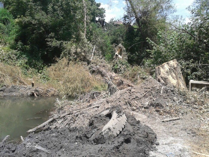 Возмущенные жители рассказали, что местные власти таким образом облагораживают русло реки Мойка. "У нас был прекрасный уголок по улице Свободная, пока туда не пришли подрядчики для облагораживания русла реки. Они сослались на наш районный акимат и довольно варварским методом загнали на середину речки экскаватор, выкорчевали многолетние деревья с корнем, переломали их пополам. Они изменили русло реки, превратив ее в болото, фауна при этом бежала и летела куда глаза глядят. Мы не против благоустройства, но речку близ домов можно было аккуратно очистить, соседи бы помогли. Мы очень любим наш дом за кусочек природы, но теперь на это грязное болото без слез смотреть невозможно", - рассказала местная жительница Екатерина Шахова.