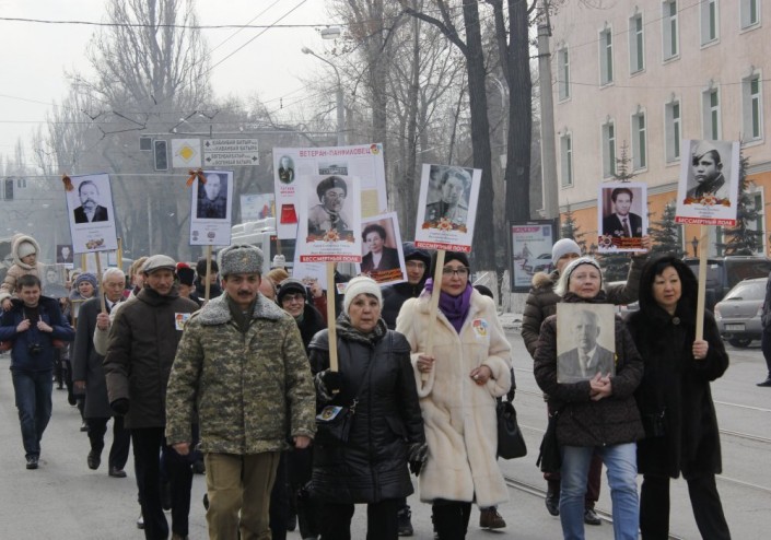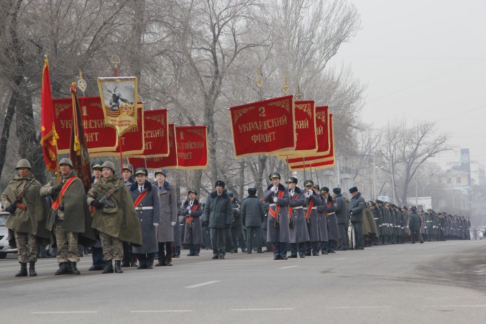 В Алматы прошло торжественное шествие "Нас миллионы панфиловцев", посвященное 75-летию подвига воинов-панфиловцев при обороне Москвы, передает корреспондент Tengrinews.kz. Целью мероприятия, организованного в рамках Международной вахты памяти, является военно-патриотическое воспитание юных казахстанцев.