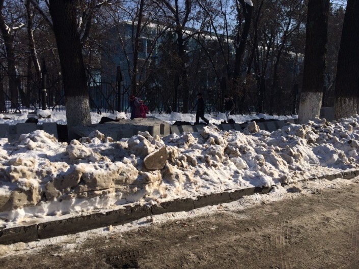 Алматинцы выкладывают фотографии снежных сугробов в социальных сетях, выражая свое недовольство тем, что снег в городе прошел больше недели назад, а уборка до сих пор не завершена, передает корреспондент Tengrinews.kz.