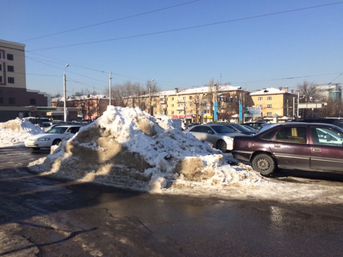 В частности, пользователь Facebook Вера Ляховская сфотографировала неубранный сугроб, лежащий прямо на проезжей части, в районе пересечения улиц Шевченко и Байтурсынова.