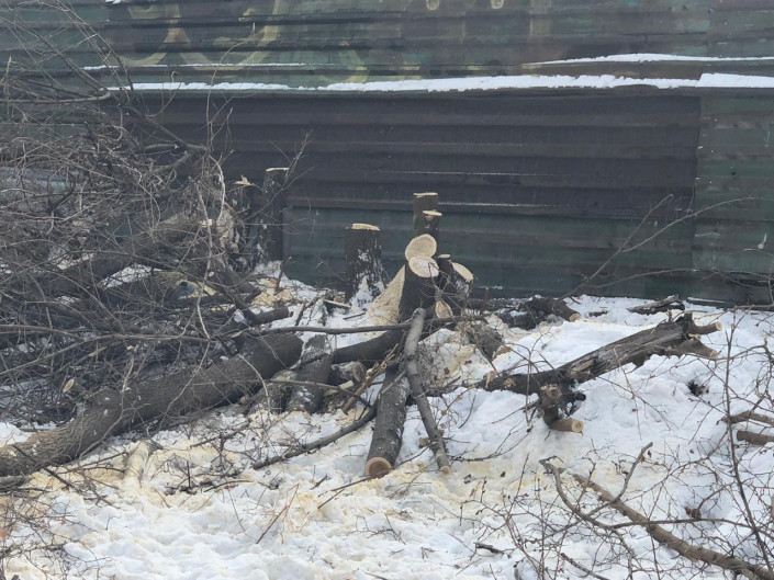 Частная территория возле противотуберкулезного диспансера, где вырубают деревья.